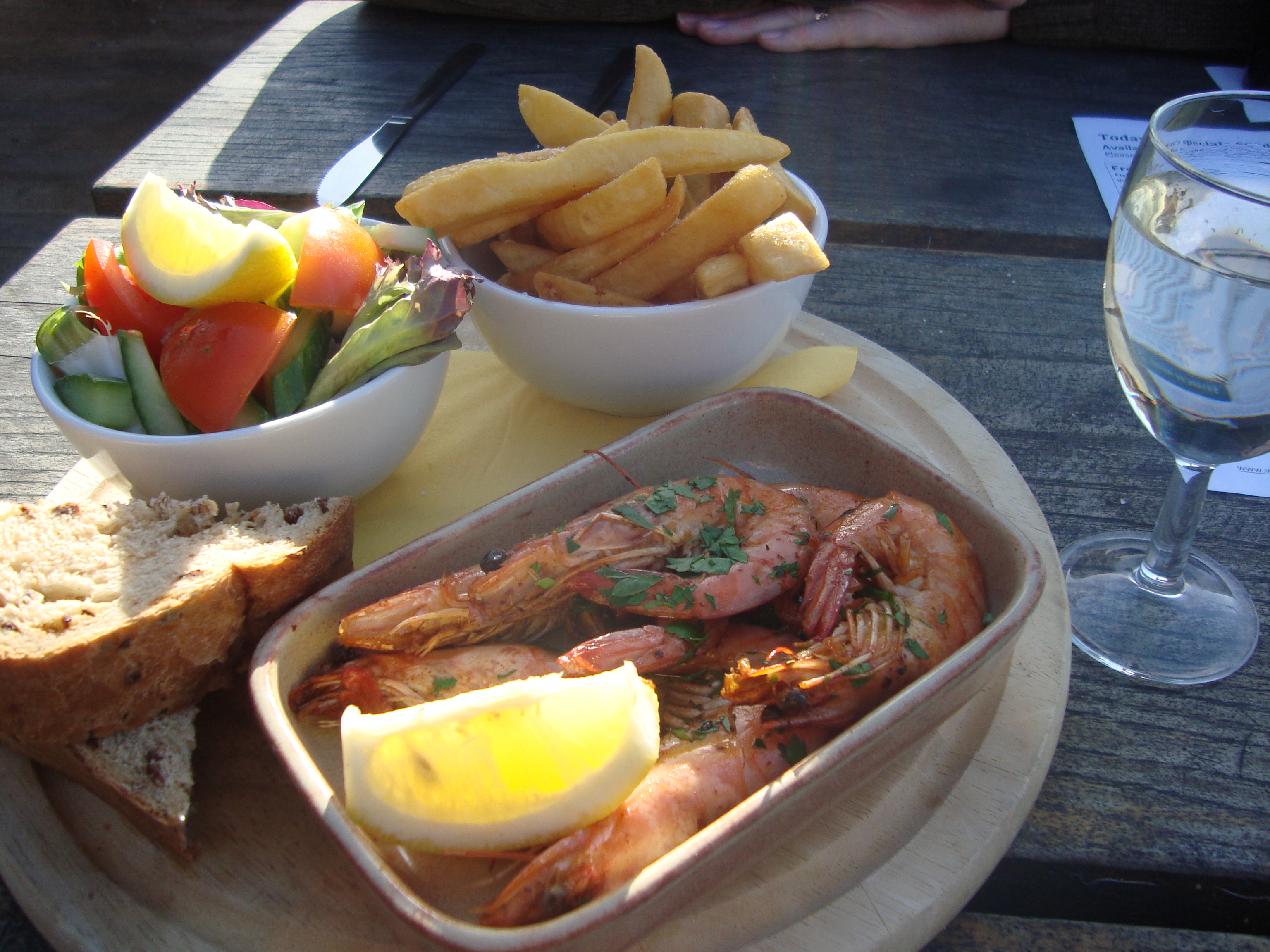 There is a Riverside Restaurant but this is the Watch House Cafe – I think! Everyone wanted to eat outside and I really fancied some prawns. Honestly, I felt as if we were on holiday, for a very brief moment!