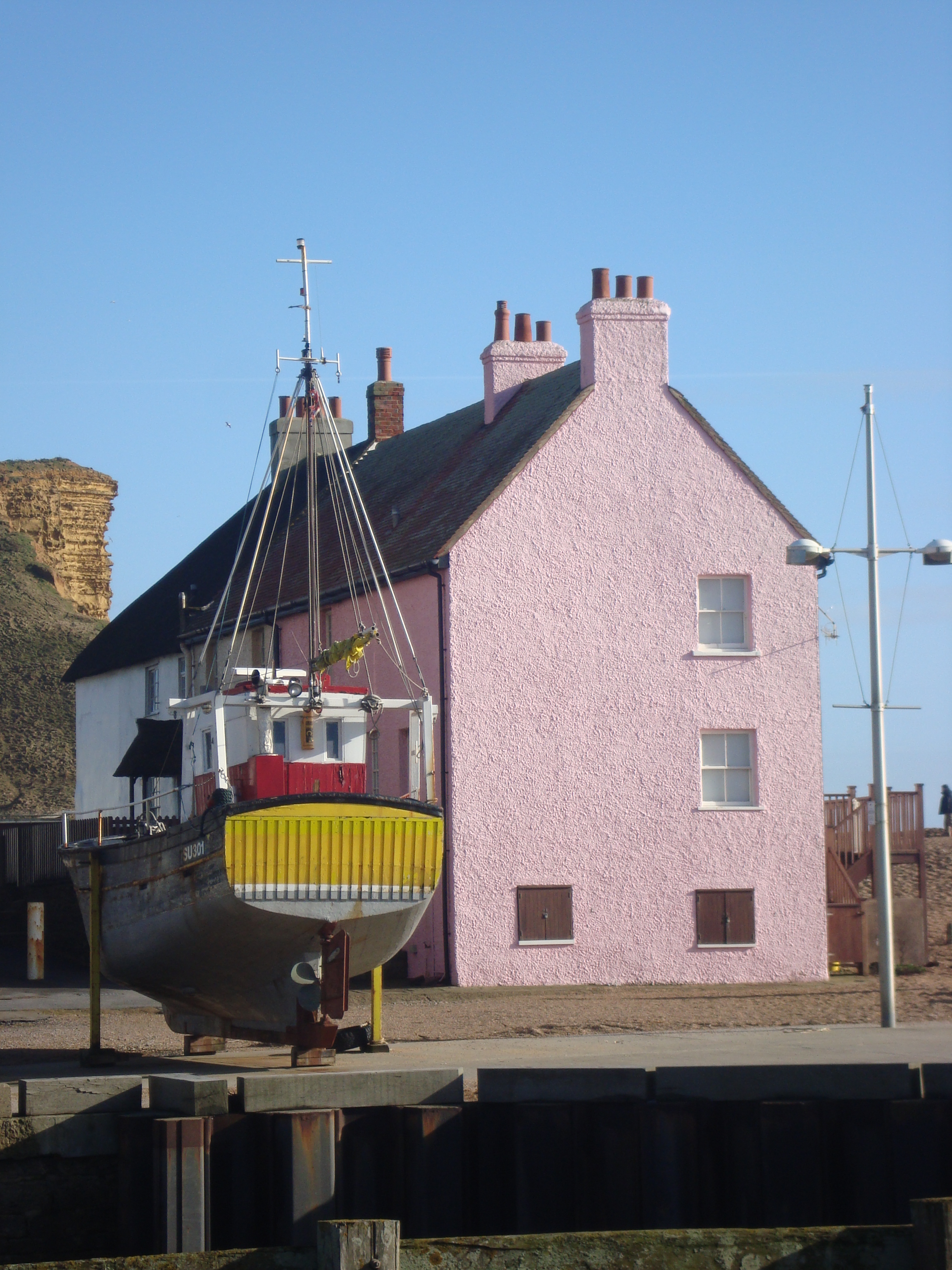 Yesterday was so different to the past two months, it felt quite strange! Back to normal today though 😦 I love your photos and I am so jealous that you are able to get to the coast so quickly – love those crab pots, the pink house, the cliffs and that lunch. Yummy!!